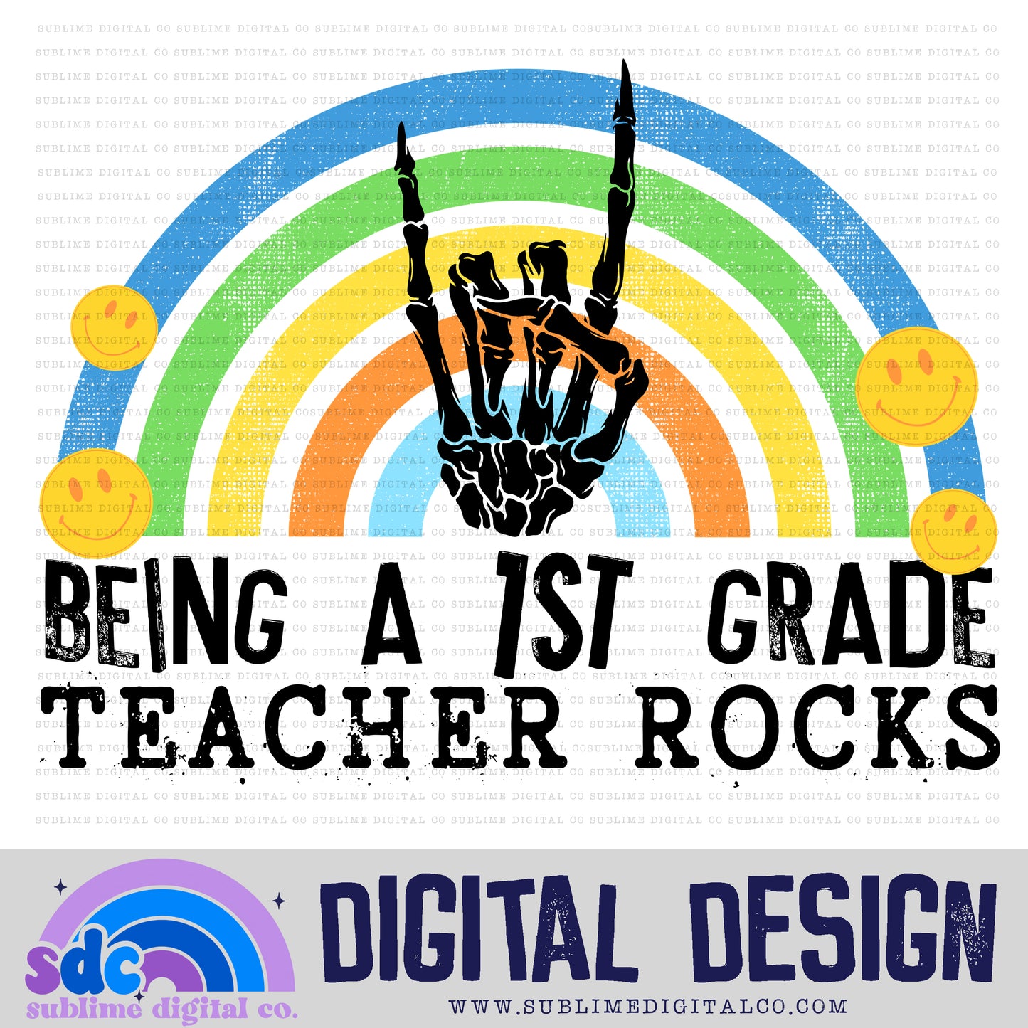 Being a First Grade Teacher Rocks - Blue/Green • Rock On • Rainbow • School • Instant Download • Sublimation Design