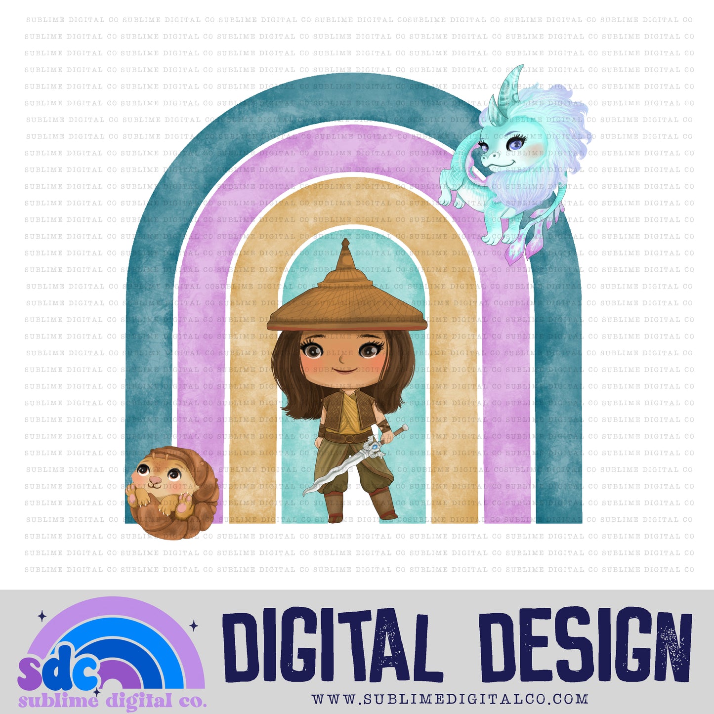 Girl & Dragon • Rainbows • Instant Download • Sublimation Design