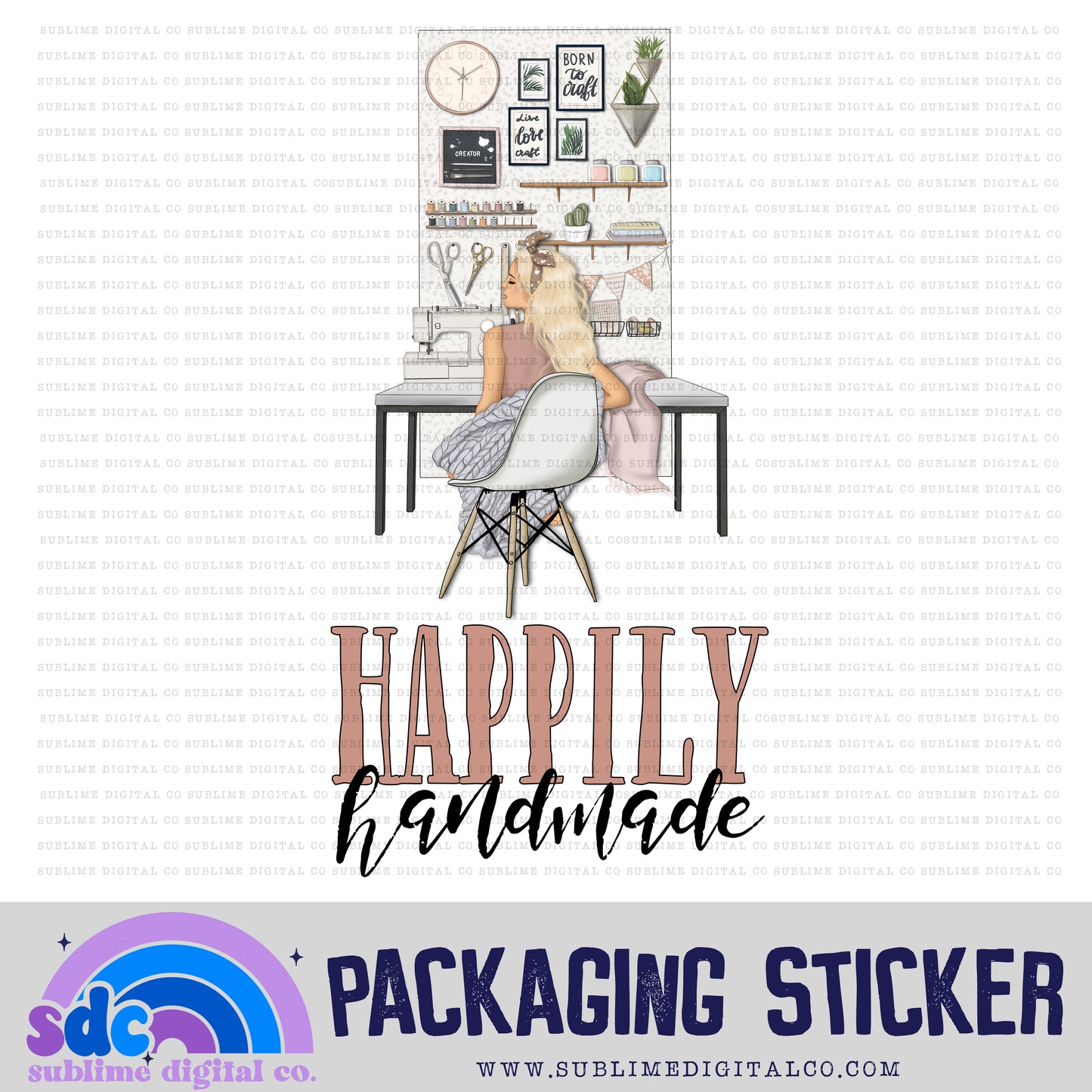 Happily Handmade - Sewing Desk - 3 | Small Business Stickers | Digital Download | PNG File