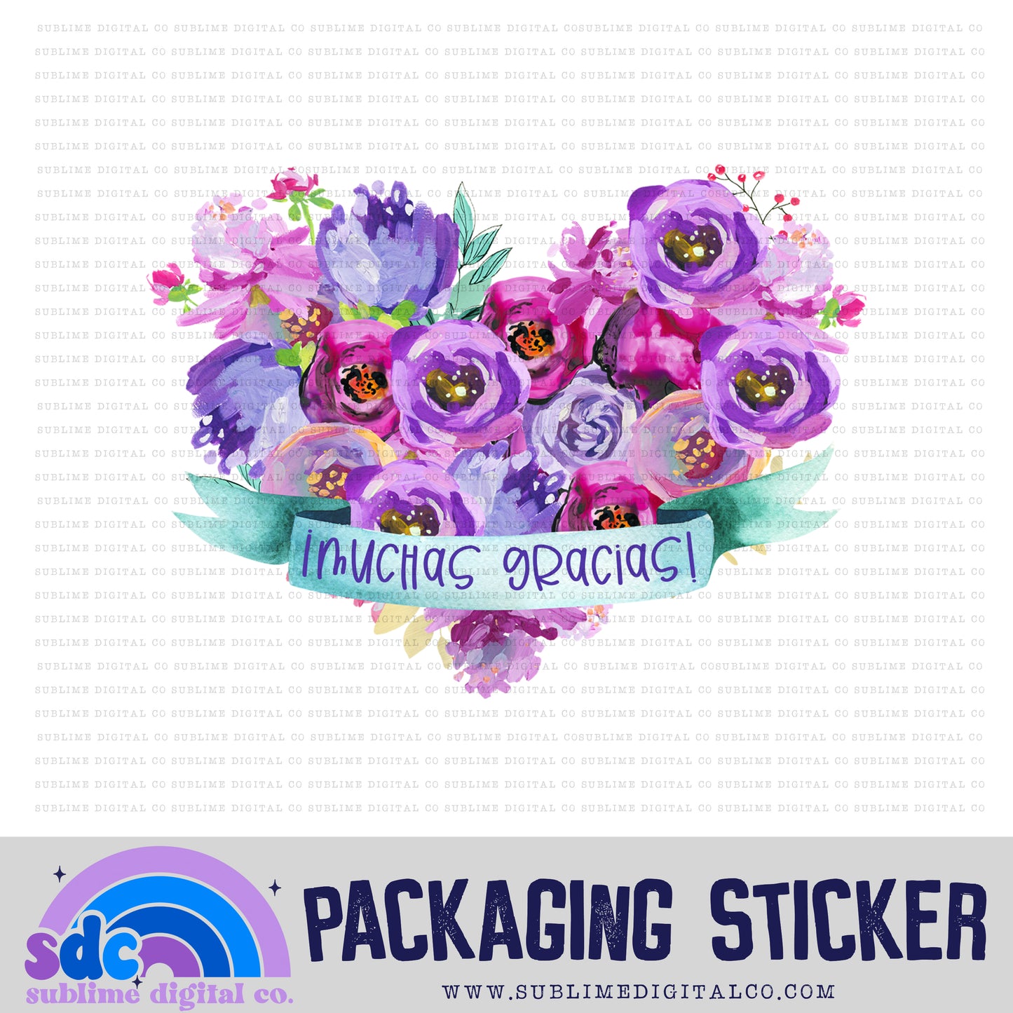 Muchas Gracias - Floral Heart | Small Business Stickers | Digital Download | PNG File