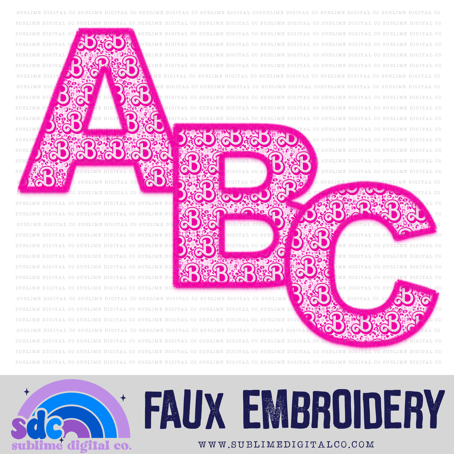 Pink Doll • Faux Embroidery Letter Sets • 26 PNG Files • Digital Download