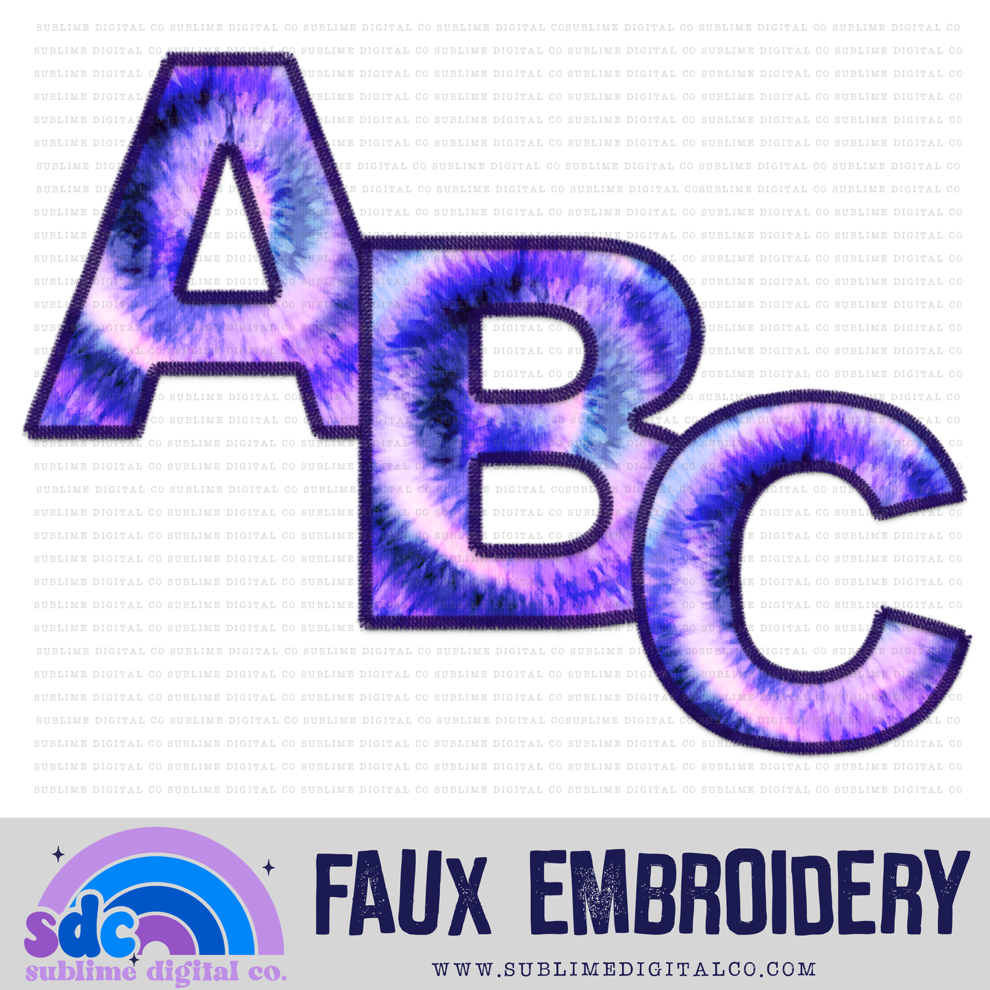 Purple & Blue Tie Dye • Faux Embroidery Letter Sets • 26 PNG Files • Digital Download