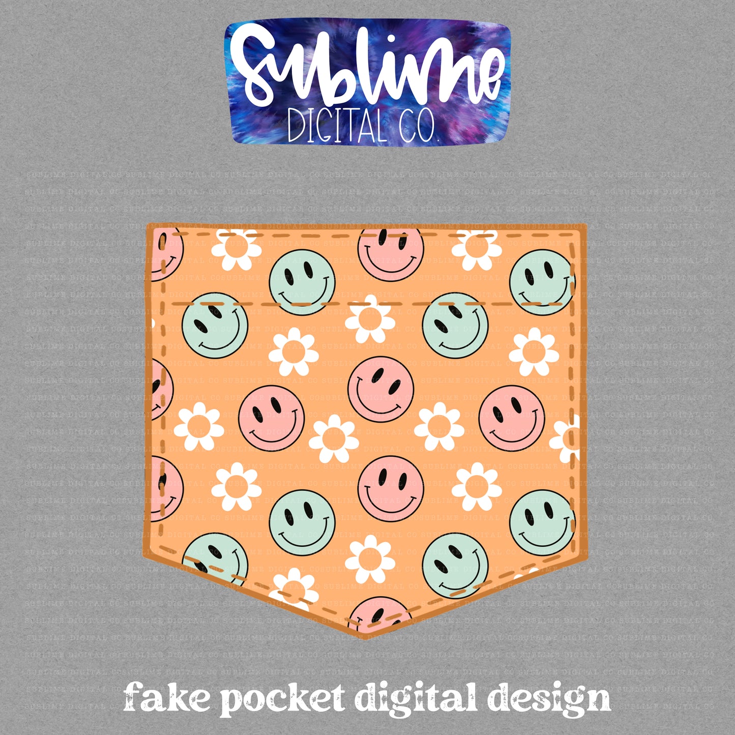 Retro Floral Smiley • Fake Pocket • Instant Download • Sublimation Design
