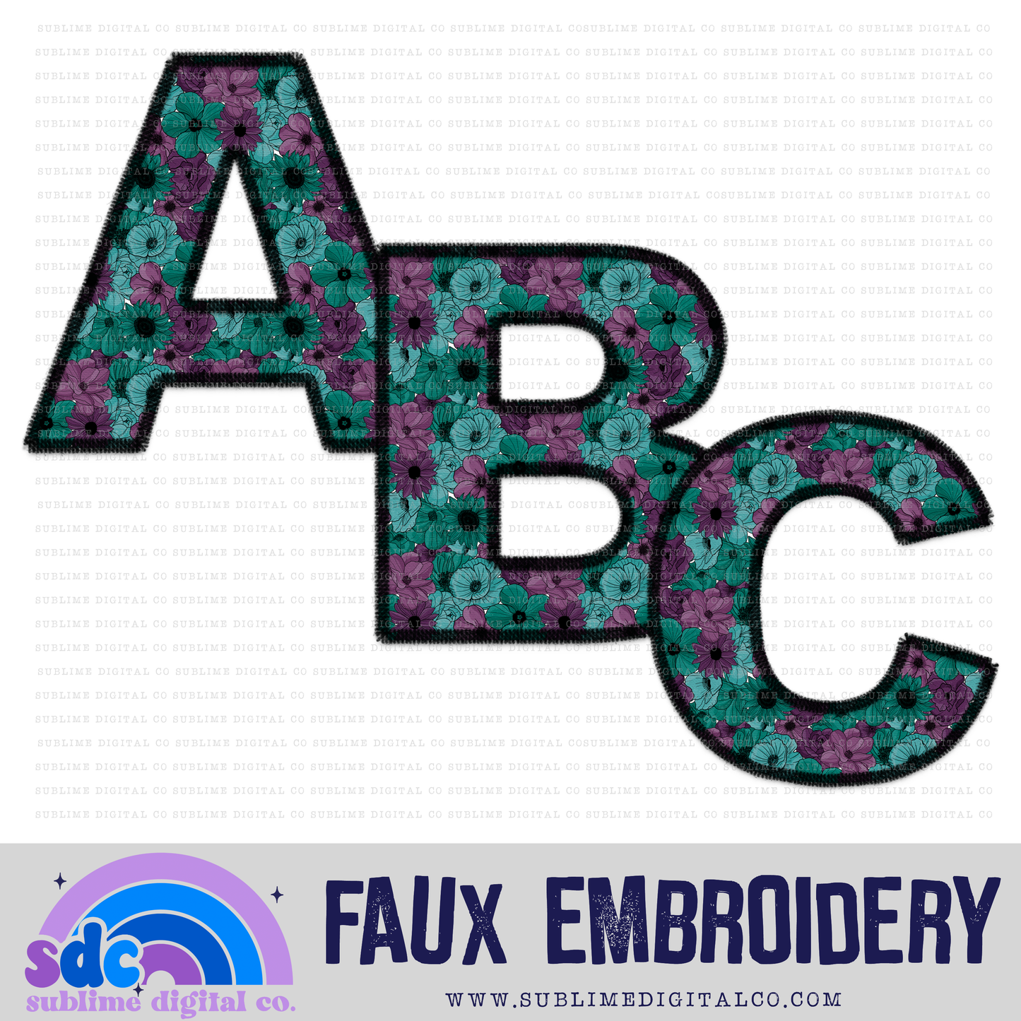 Teal Purple Floral • Faux Embroidery Letter Sets • 26 PNG Files • Digital Download