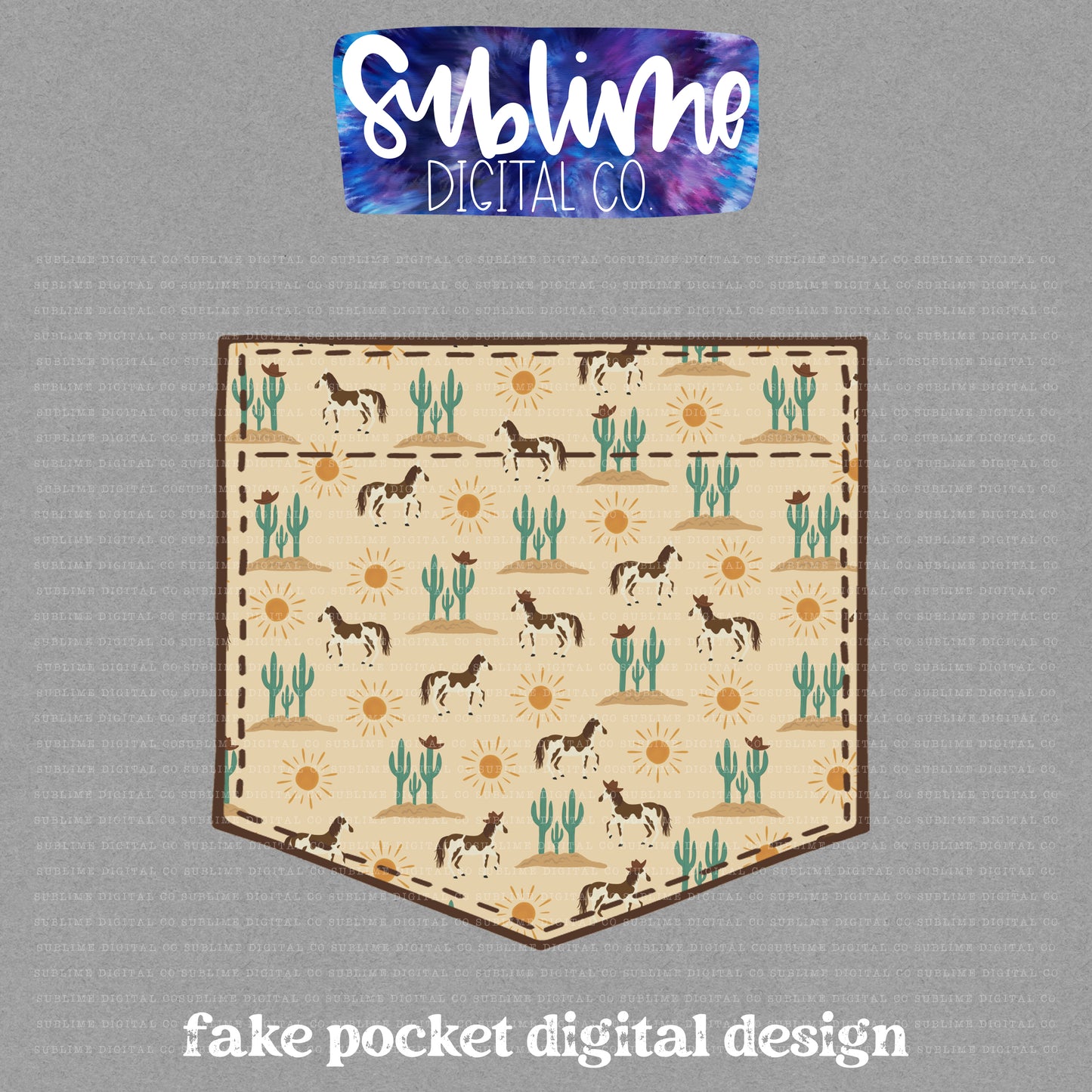 Western Cactus Horse • Fake Pocket • Instant Download • Sublimation Design